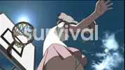制作 薄金眞 w スケジュールがない!!スタートから時間とクオリティの攻めぎあい。 時間が無い中でクオリティを落とさないようにするには..... そうです。徹夜です。眠らないで仕事をして、会社に寄生するホームレス。 日が昇ってくるとダンボールの上に死体が照らされてきます。 10日に1回、水あびにのみ帰宅。原画の回収等(注1)は車を使うので大好きなお酒 を口にする事はできません。 その代わり煙草は1日60本ぐらいは灰と化します。寝不足で体力が低下してくると虫 歯が痛みだしたりしてさらに眠れなくなったりします。どーどーめぐり。 以上制作義務です。(←オイ) 朝方森本監督とビルの最上階から街並みや遠くに見える山々、大空と空を見ていま した。 朝日に照らされた風景は本当にきれいで吸い込まれそうでした。 徹夜でHiになっている分、妙に感覚が鋭くなって空を飛んでいる錯覚に陥ります。 (気を抜くと空をダイビングしそうだったので、必死にこらえていた、本気で。 飛ばなくてよかったねぇー(笑) サバイバル アニメーションバージョンで出てくる少女が解放されて大空を舞っている時、こん な気分なのかなと少し感傷的になった記憶があります。 サバイバルアニメーションバージョンの中にはそういうSTAFFの制作過程における想いが込めら れています。 映像表現に関する技術的な事も含めて、画面の中から様々な事を感じとってもらえ れば幸いです。 だ・か・ら 買え!見ろ!安いから......。 | ![]() | ||